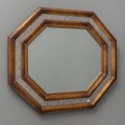 Octagonale facetgeslepen spiegel in deels goudgeschilderde lijst, 20e eeuw, 69 × 81 cm