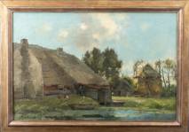 Johannes Cornelis Roelandse (1888-1978), boerenerf met hooimijt, olieverf op doek, l.o. gesigneerd -craquelé-, 40 × 60 cm