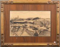 Johannes Graadt van Roggen (1867-1959), zicht op Treboul-Douarnenez in Bretagne, zwart krijt en houtskool op papier, niet gesigneerd, circa 1922 -enkele beginnende roestvlekjes-, 29 × 46,5 cm
