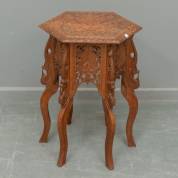 Zeshoekig gesneden teakhouten bijzettafeltje, Indonesië, 20e eeuw, 50 × Ø 35 cm
