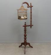 Vogelkooi hangend in gesneden mahonie standaard, eind 19e eeuw, hoogte 160 cm