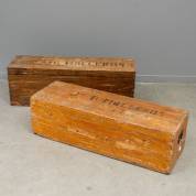 Paar gehoute kisten, de deksels met opschrift: Jhr. D Mollerus en Jhr. A.M.C. Mollerus -beide sleets en met krimpscheuren-, grootste 33 × 100 × 30 cm