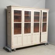 Grijsgeschilderde houten boekenkast met vier deuren, eerste helft 20e eeuw -diverse gebruikssporen, niet demontabel-, 186 × 235 × 48,5 cm