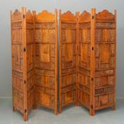 Zesslags hardhouten kamerscherm met opengewerkte paneeltjes, Indonesië, 20e eeuw -nu in twee delen van drie-, 182 × 51 cm per deel