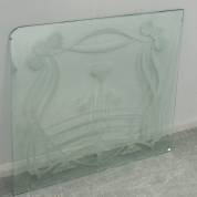 Glazen ruit met gesatineerd art nouveau bloemmotief -één hoek afgerond, chipjes-, 90 × 90 cm