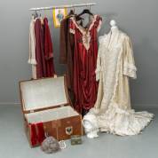 Vier theaterkostuums en -accessoires, voor het toneelstuk 'Prinses Marianne, De Romantische Oranje', gespeeld door Nel Kars -in gebruikte staat-, maat 38