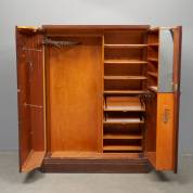Mahoniegefineerde compactom kledingkast, het interieur met diverse compartimenten, deels met glazen deurtjes, jaren '20 -diverse gebruikssporen-, 172,5 × 125 × 54 cm