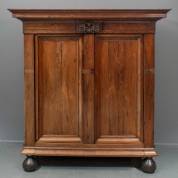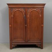Eiken tweedeurs kastje met toogdeuren, renaissance-stijl en vermoedelijk periode -één profielrand van de kap los-, 154 × 125 × 62 cm