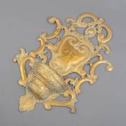 Messing wijwaterbak, opengewerkt met voluten, 19e eeuw -defecten-, 70 × 47 × 14 cm