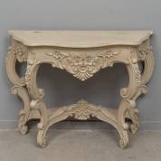 Grijsgelakte wandtafel met gesneden bloemdecor, Louis Quinze-stijl, modern, 82 × 108 × 40 cm
