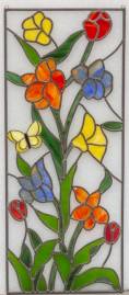 Glas-in-loodraam: bloemen -voorzien van twee ophangogen-, 85 × 35 cm