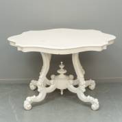Witgelakte notenhouten spinnenkoptafel, het onderstel met fruitdecor, Willem III -enkele defecten aan lakwerk-, 79 × 123 × 96 cm