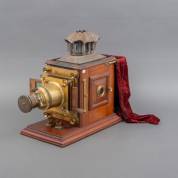 Toverlantaarn in mahonie kast, adres W.C. Hughes, London, circa 1880