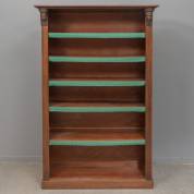 Eikenhouten boekenkast met twee gesneden mascarons in de kap, eind 19e eeuw -gebruikssporen-, 181 × 119 × 43 cm