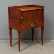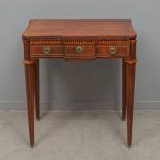 Mahonie speeltafeltje met tandlijst en geblokte biezen, Louis Seize -defecten en restauraties, waaronder ontbrekende profieltjes-, 76 × 72 × 44 cm
