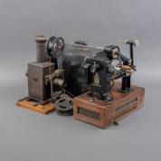 Twee stomme-filmprojectoren: Ernemann Kinoptikon, en Krupp-Ernemann Kinox -beide niet getest-, de kinox 44 × 23 × 44 cm zonder beschermkap