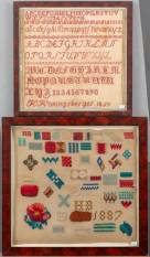Merklap in lijst met naam 'H. Koningsberger' en gedateerd 1859, en stoplap in lijst, gemonogrammeerd 'HB' en gedateerd 1887, stoplap 38 × 40 cm
