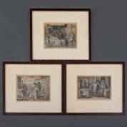 Drie kopergravures: doktersbezoek, tandartsbezoek, en vrouw met pijl in de borst, de laatstgenoemde door Cryspijn van den Queborne, alle drie naar Adriaen van de Venne, 17e eeuw, 10,5 × 13,5 cm
