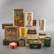 Verzameling oude bewaarblikken -gebruikssporen-, herkomst: Kruideniersmuseum Utrecht