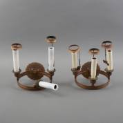 Paar verguld bronzen drielichts wandappliques met palmetrand, empire-stijl -één licht afgebroken-, 23 × 23 × 23 cm