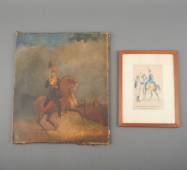 Naar Jan Willem Pieneman: ruiterportret van Henry William Paget, Lord Uxbridge, aanvoerder van de cavalerie bij de Slag bij Waterloo, olieverf op doek, niet gesigneerd -slechte conditie-, 45 × 38,5 cm, daarbij: aquarel: 'Garde Soldee d'Amsterdam 1812, infanterie et cavalerie', 18 × 12 cm