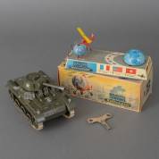Twee stuks blikken speelgoed: Gama Tank, en Remote Control Helicopter, die laatste in doos, helicopter 15 × 22 × 8 cm