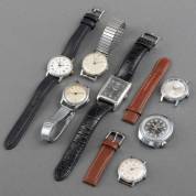 Zeven herenpolshorloges, waaronder: Buren Grand Prix en Lincoln, uurwerken: 6 handopwind, 1 quartz -gebruikssporen-