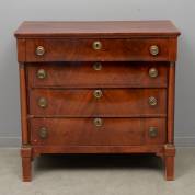 Mahoniegefineerde commode met vier lades, geflankeerd door zuilen, empire -gebruikssporen-, 90,5 × 94,5 × 50,5 cm