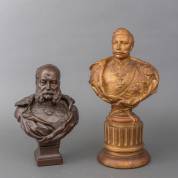 Goudkleurige buste van de jonge keizer Wilhelm II van Duitsland, op houten voet, gemerkt E. Börmel / F. Hornemann Berlin, hoogte 48 cm, en een gebronsd metalen buste van Wilhelm II op latere leeftijd, hoogte 35 cm