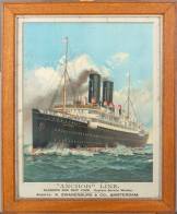 Affiche: 'Anchor' Line Glasgow and New York, Agents A. Zwanenburg & Co., Amsterdam. Lithographie in kleur van het 'Steamship Caledonia', ca 1910, ingelijst, -enkele vlekjes in de marge-, 63 × 47 cm