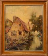 Alfred Joseph Auguste van Neste (1874-1969), huisjes aan het water, marouflé, l.o. gesigneerd, 45 × 37 cm