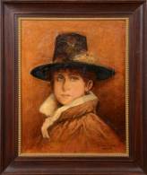 Hollandse School: portret van een vrouw met hoed, olieverf op doek, r.o. gesigneerd W. Erkelens Cooke, begin 20e eeuw, 49 × 39 cm