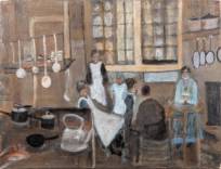 Anton Rudolf Mauve (1876-1962), bediendes in een keuken, olieverf op doek, r.b. gesigneerd, 43 × 56,5 cm
