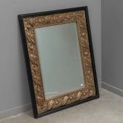Gefacetteerde spiegel in zwart en zilverkleurige houten lijst met bladdecor, modern, 98 × 77 cm