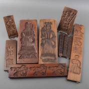 Zeven houten koekplanken en drie houten suikerplankjes, langste 12 × 73,5 cm