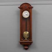 Regulateur in houten kast, met witgeëmailleerde wijzerplaat, eind 19e eeuw, hoogte 84 cm -inclusief slinger, opwindsleutel en één gewicht-