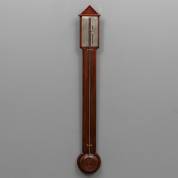 Mahonie stickbarometer met timpaan en tinnen schaalplaat, Engeland, 19e eeuw, 96,5 cm hoog