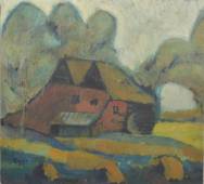 Pieter Briels (1929), landschap met boerderij, marouflé, l.o. gesigneerd en gedateerd '62, 44 × 48