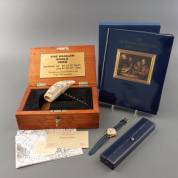 Boek: Dubbe, B., 'Die Mörsersammlung Ernst Genz', Siegfried Genz, Lagos, 1994, daarbij: twee relatiegeschenken: een replica van een kurkentrekker uit 1856 in bewaarkist en een polshorloge