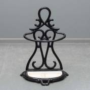 Zwartgelakte gietijzeren paraplustandaard met witgelakte lekbak, 20e eeuw, hoogte 68 cm