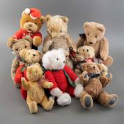 Tien mohair beren, waaronder Northumberland en Liberty, en drie kerstuitvoeringen -in gebruikte staat-, grootste 40 cm