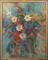 Schilderij: bloemstilleven, olieverf op doek, r.o. gemonogrammeerd C.K.W. en onduidelijk gedateerd 1947?, 89 × 69 cm