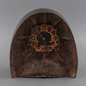 Koperen tafelklok met gehamerd decor, in de stijl van Louis Bogtman, Amterdamse School, met sleutel en slinger, 24 ×11 × 24 cm