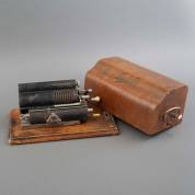 Rekenmachine in houten kist, uitvoering Thales, Duitsland, jaren '20 -corrosie, gebruikssporen-, 11 × 28 × 13 m