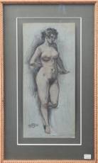 Eduard Houbolt (1865-1954), staande vrouwelijk naakt, krijt op papier, l.o. gemonogrammeerd en gedateerd 1922, 30 × 13,5 cm