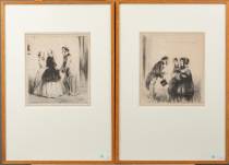 Charles Eduard de Beaumont (1812-1888), twee litho's van mannen die dames het hof maken, genummerd 91 en 122, afkomstig uit 'Les Jolies Femmes de Paris', 1846, 22 × 20 cm