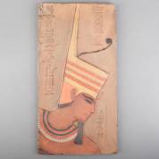 Steengoed reliëf: Koning Thoetmosis III, kopie naar gevonden reliëf bij tombe van Koning Pylon VII, 20e eeuw -gebruikssporen-, 59 × 30 cm