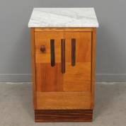 Eiken nachtkastje met marmeren blad en coromandel plint en accenten, Haagse School, jaren '20, 69 × 42 × 37 cm