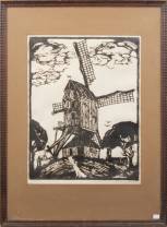 Nicolaas van der Schaft (1893-1979/1980), 'Molen te Best', houtsnede 'zelfdruk', r.o. gesigneerd, 40,5 × 31,5 cm
