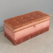 Gecapitonneerd stoffen klepbankje bekleed met roze velours, tweede helft 20e eeuw -gebruikssporen, één knoop ontbreekt-, 42 × 101 × 45 cm